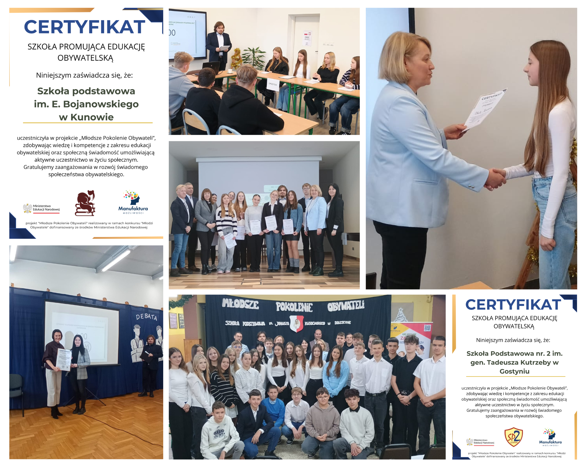 - uczniowie biorący udział w debatach pokazowych zostali uhonorowani imiennymi certyfikatami,